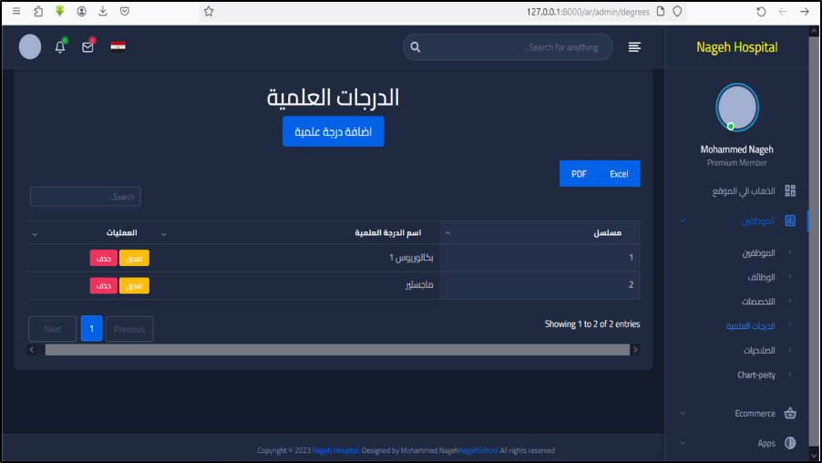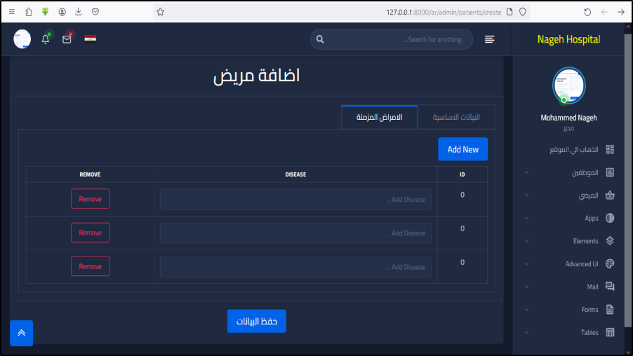 تصميم برنامج ادارة المستشفيات الطبية لارافيل.